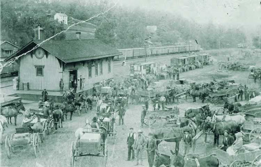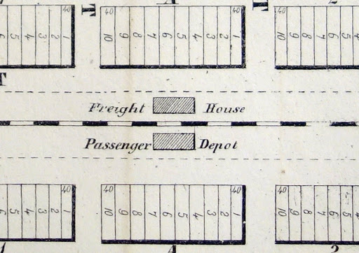 By charter, the railroad was granted 100' on each side of the line for the main tracks, side tracks, and operating area. Although the station was the center of the town, this 200' wide swath created a substantial separation through railroad towns that never occurred in earlier towns. Further dividing the city, the Associates' standard plat indicates a freight depot on one side of the tracks and a passenger depot on the other. More than simply shifting the central focus of the town, the two stations established an inherent bias to these towns: one side of the tracks caters to warehouses, light manufacturing, and other freight-oriented uses, and the other caters to shops, and traveler-oriented uses. Passengers were reluctant to cross the dangerous railroad right-of-way, so most commercial businesses preferred to locate on the station side of town. In other words, the “wrong side of the tracks” is built into the urban template through both function and physical separation. Lower income citizens congregated on the less welcoming, more industrialized, and sometimes-toxic side of town.