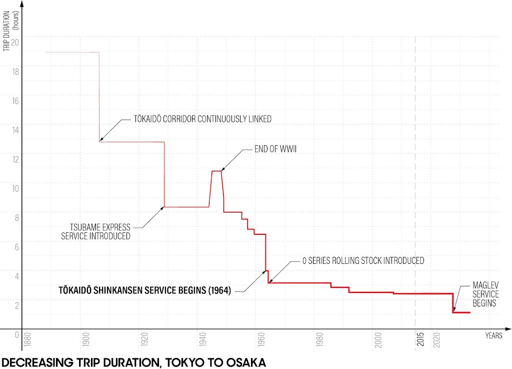 speed of 300km per hour. Japan has dramatically compressed the relative distance