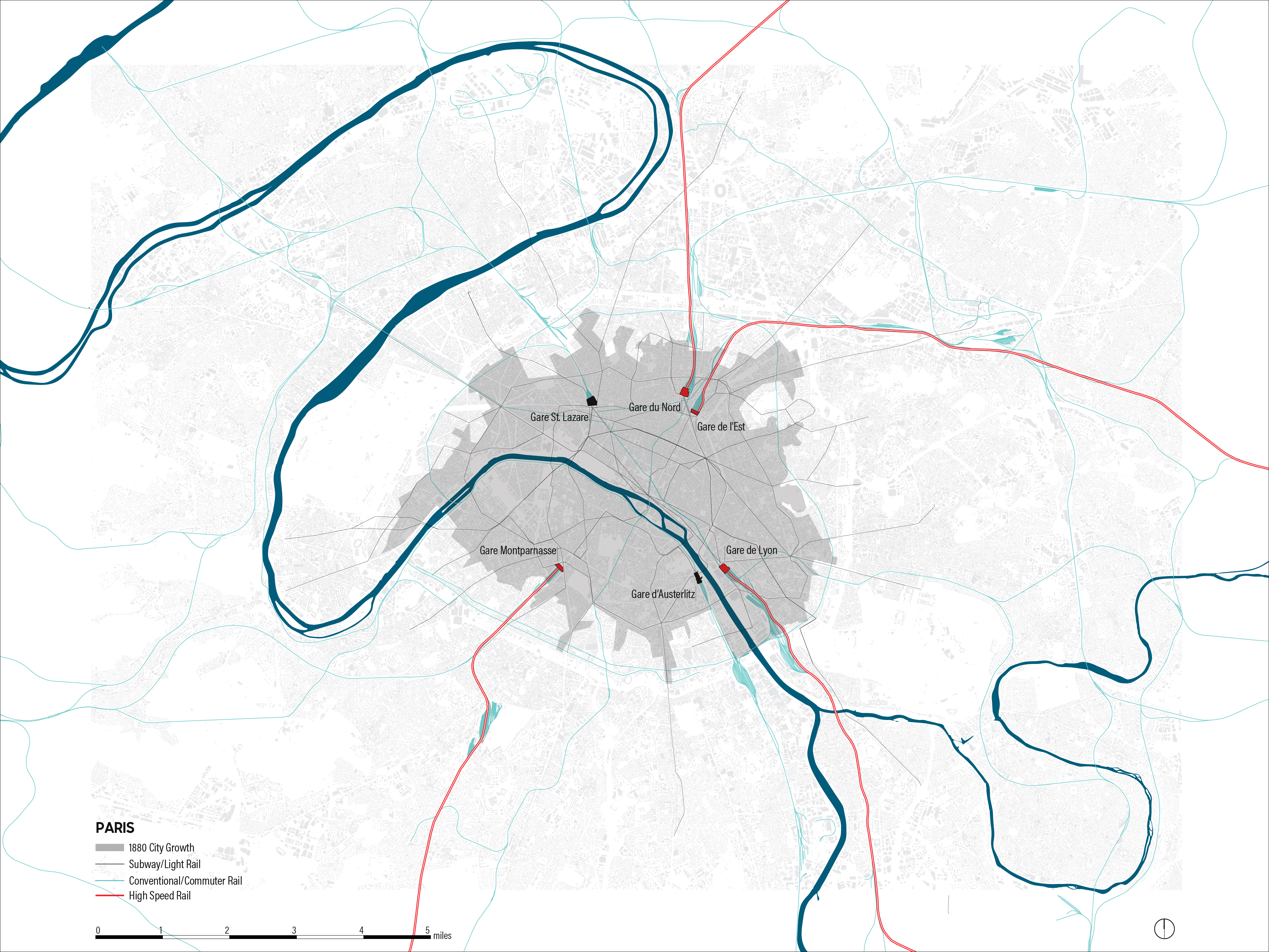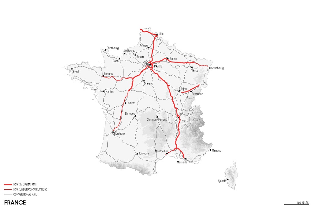 Despite these hurdles, the introduction of contemporary HSR networks do more than just reproduce the routes of the past: these high-speed networks establish a new operative scale for designers, conflating the traditional scale of the city and the region or even nation. In order to understand this emerging scale of design, we need to understand the historical development of both the conventional and high-speed rail networks in several cultural contexts. Below is a brief history of the development of conventional and high-speed rail networks in Japan, France, Germany, and China.