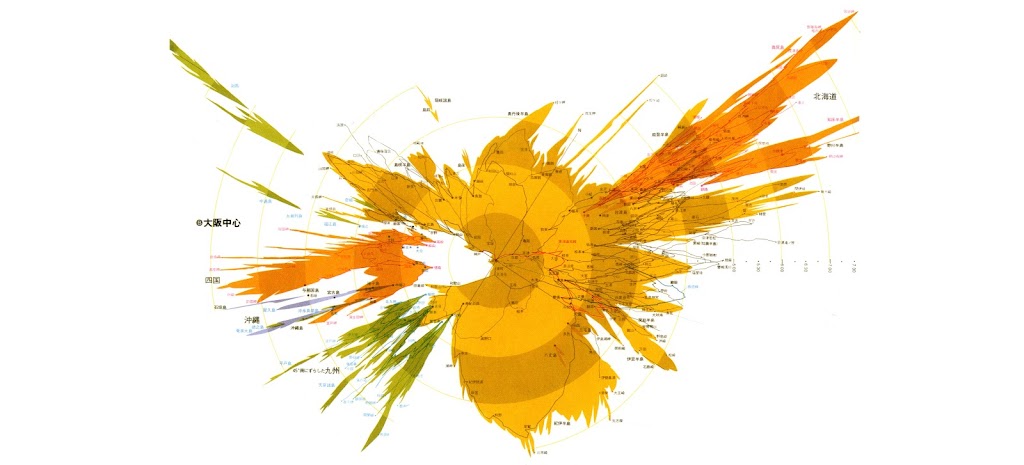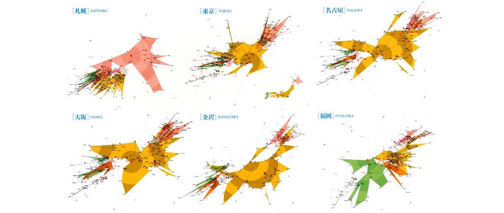 Simplified time-space maps of various Japanese cities. Source: Kohei Suguira.